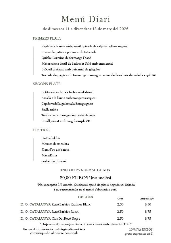reconegut pel bon servei i una millor cuina tradicional catalana.