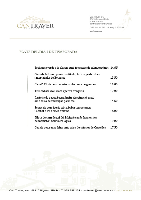 El restaurant Can Traver és una finca rústica –la típica casa pairal catalana– que compta amb terrasses exteriors i vistes a un entorn natural idíl·lic on sobresurten els Cingles de Bertí. Les instal·lacions disposen de diferents sales i menjadors per a celebracions de tota mena. Tot plegat, es recolza en una gastronomia a mig camí entre la tradició i l’avantguarda, entre la cuina d’interior i la mediterrània. Hi podreu tastar plats exquisits.